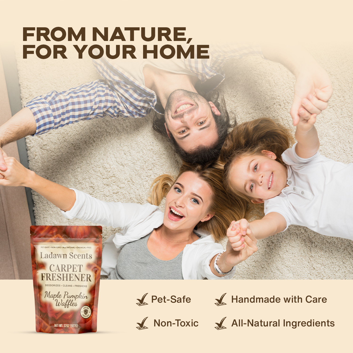 Immerse Yourself in the Warmth of Autumn with Maple Pumpkin Waffles Carpet Freshener by Ladawn Scents.